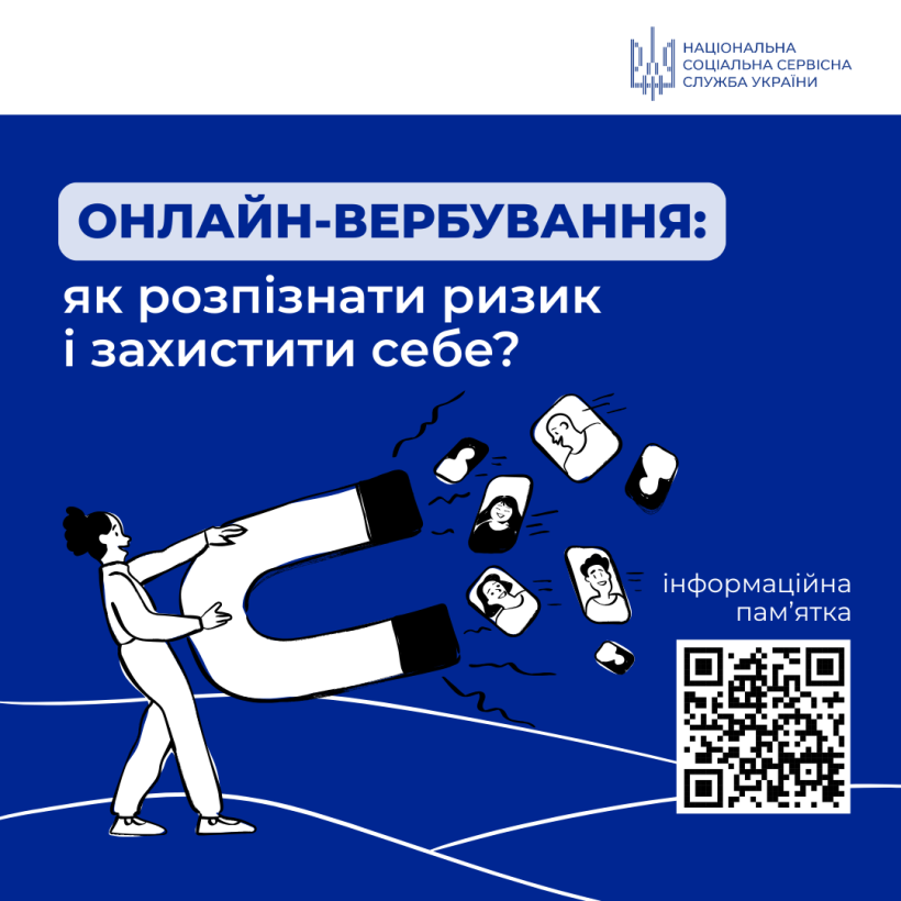 Дізнатися більше про онлайн-вербування, навчитися розпізнавати небезпечні пропозиції та захистити себе допоможе пам’ятка, яку підготувала Національна соціальна сервісна служба України.