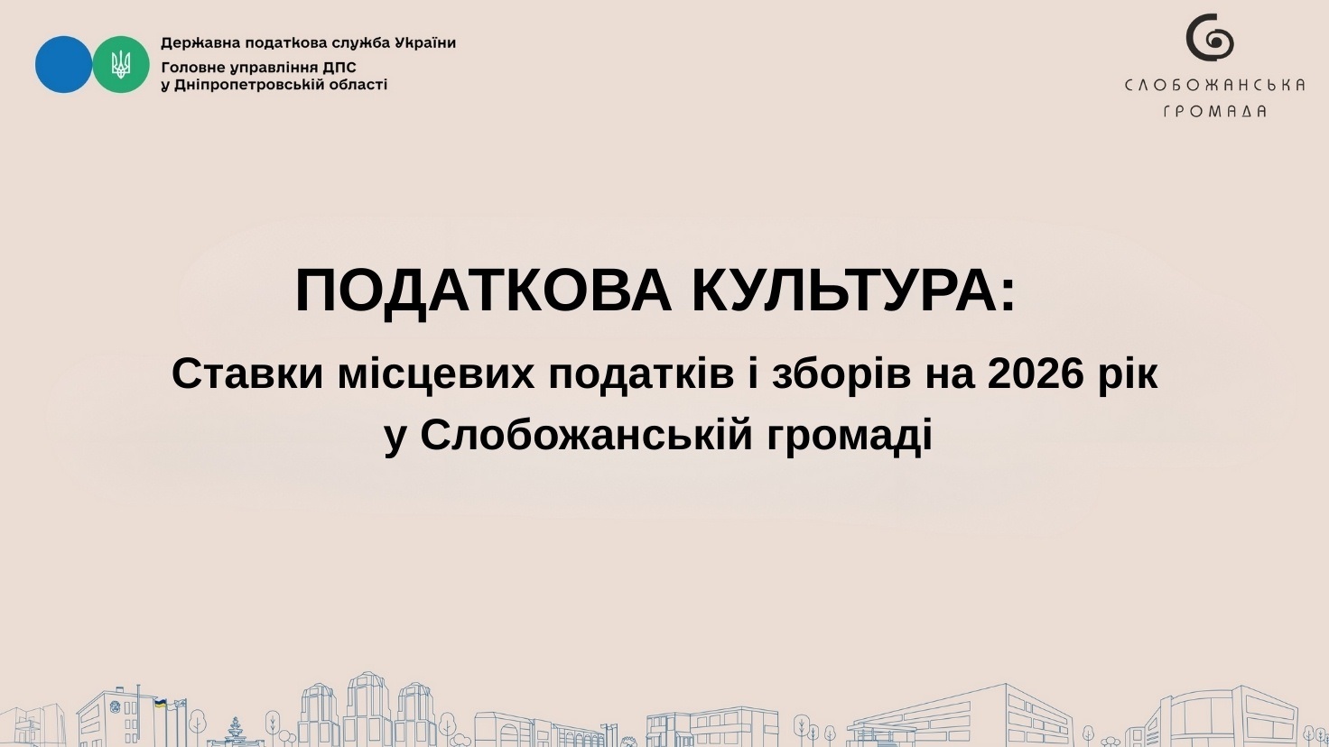 Повідомляємо, що ставки та пільги зі сплати місцевих податків і зборів на території Слобожанської селищної ради на 2026 рік залишилися без змін.