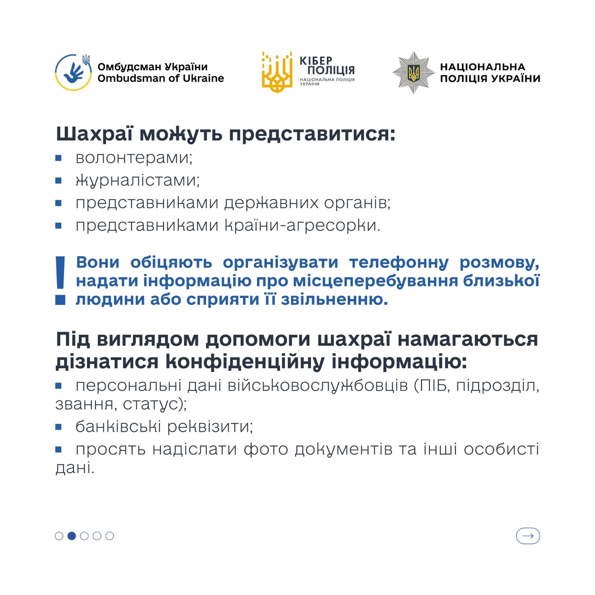 Шахраї активно відстежують родини полонених і зниклих безвісти у соцмережах. Вони швидко виходять на контакт, представляються «посередниками» або «представниками органів» та обіцяють допомогу.