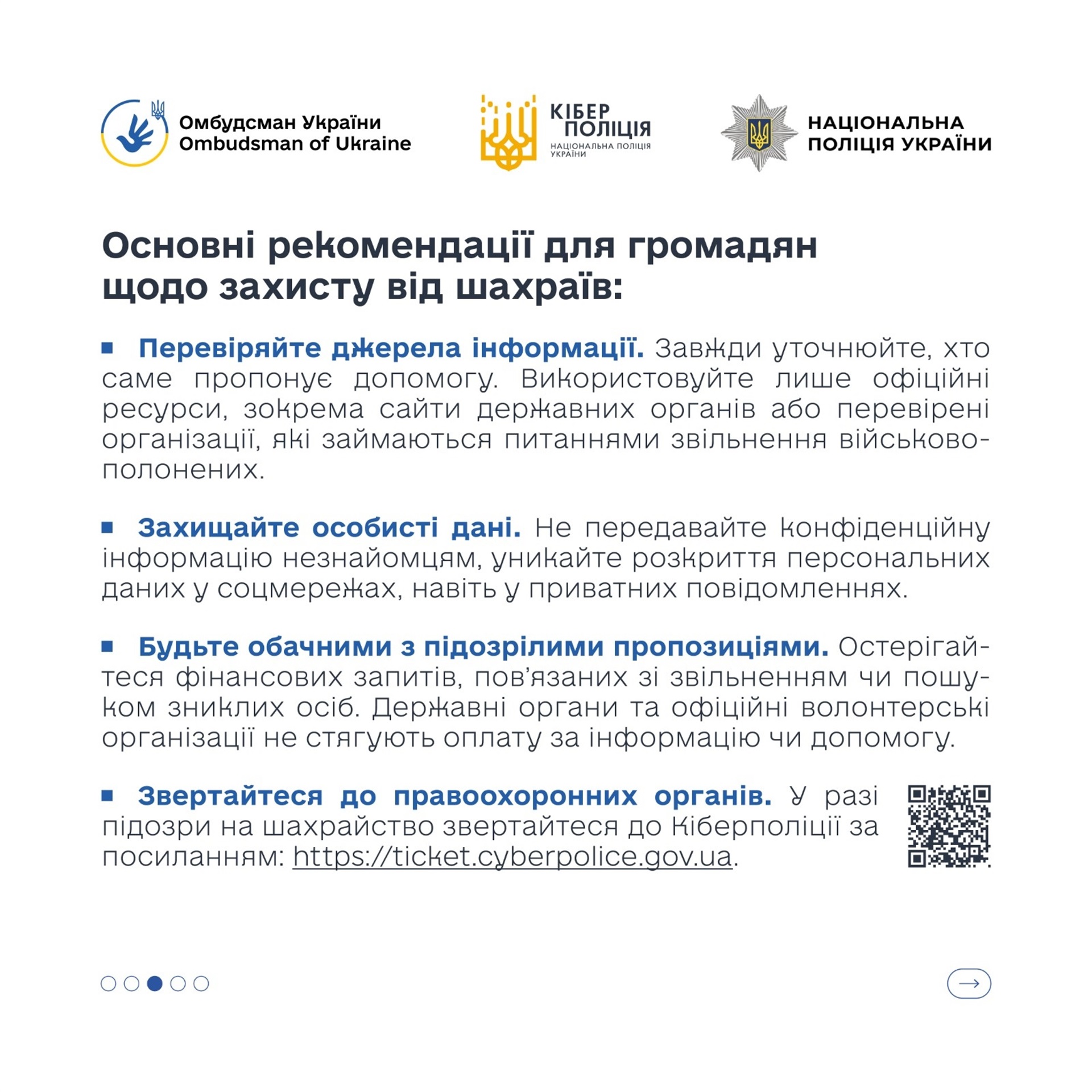 Насправді їхня мета – ваші персональні дані. Кіберполіція разом із Офісом Омбудсмена України підготували інфографіку з типовими схемами обману та простими правилами безпеки.