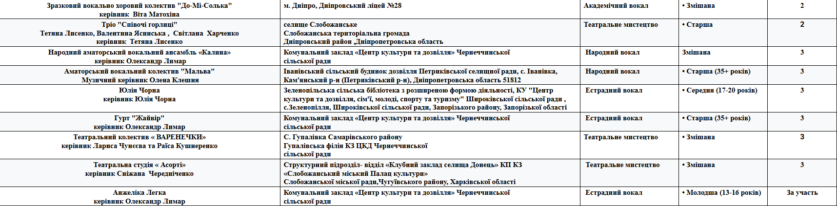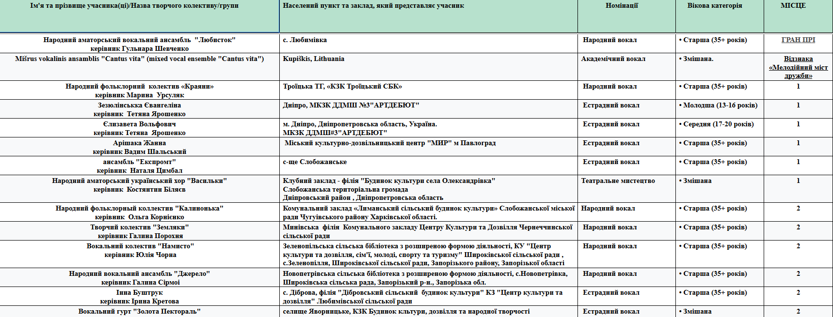 За результатами фестивалю-конкурсу призові місця у номінаціях посіли: