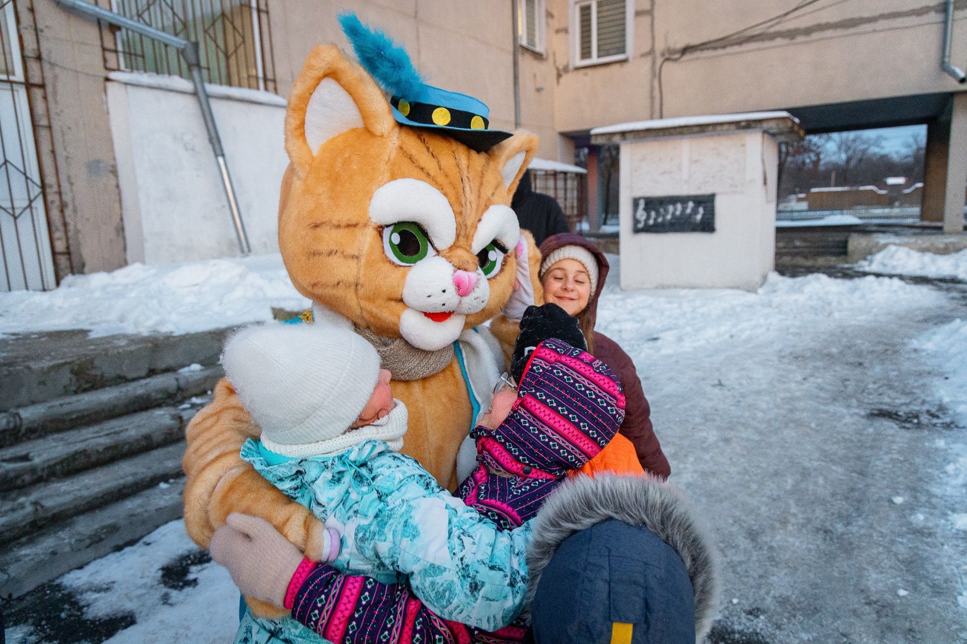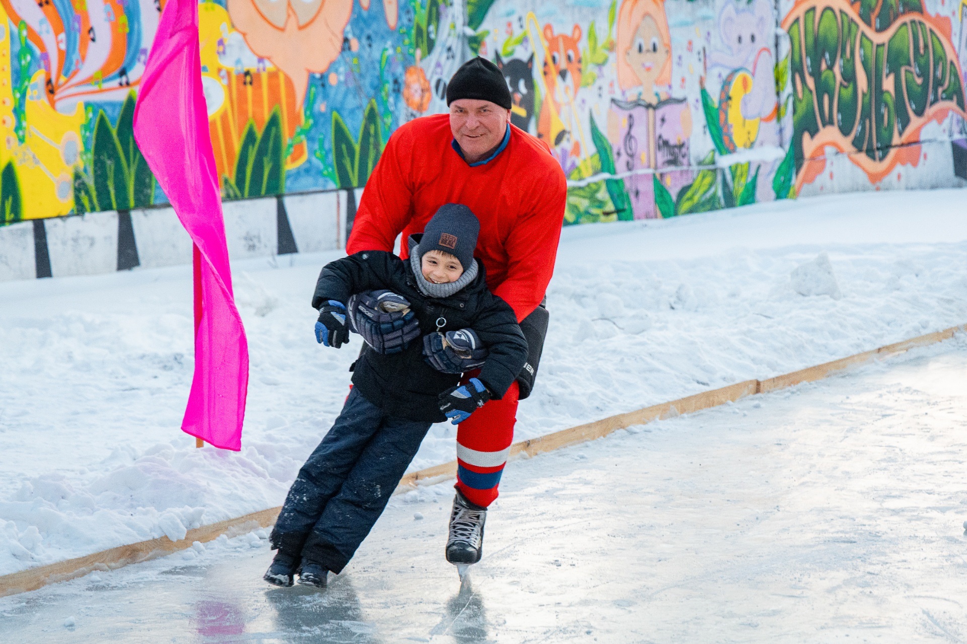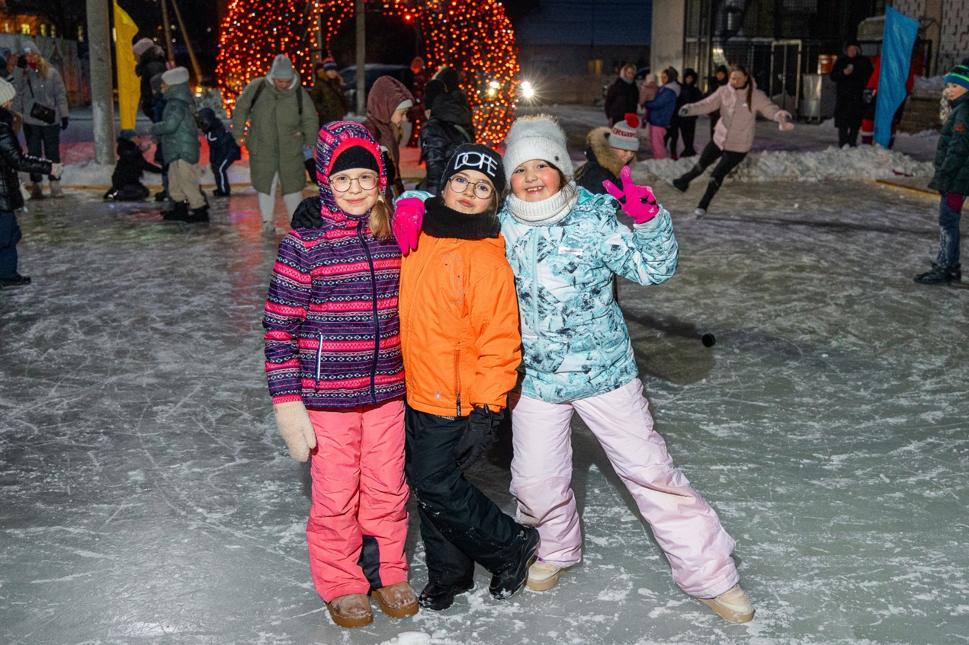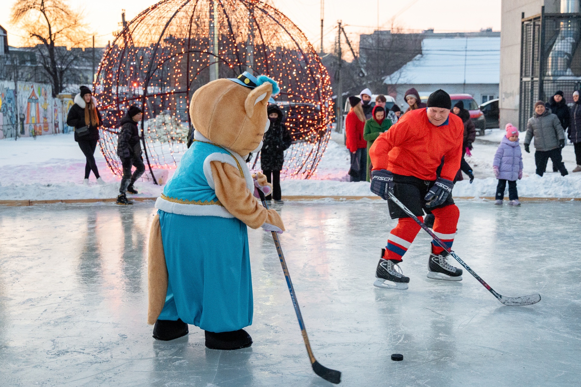 Першими на лід вийшли казкові персонажі: Пан Коцький та слобожанський хокеїст Гуржик, які у жартівливій формі продемонстрували можливості ковзанки та створили святковий настрій для відвідувачів.