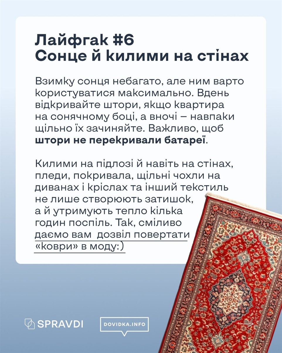 У цьому дописі проєкт Dovidka.info та Центр стратегічних комунікацій та інформаційної безпеки зібрав практичні та дієві поради, як зберегти тепло вдома без опалення.