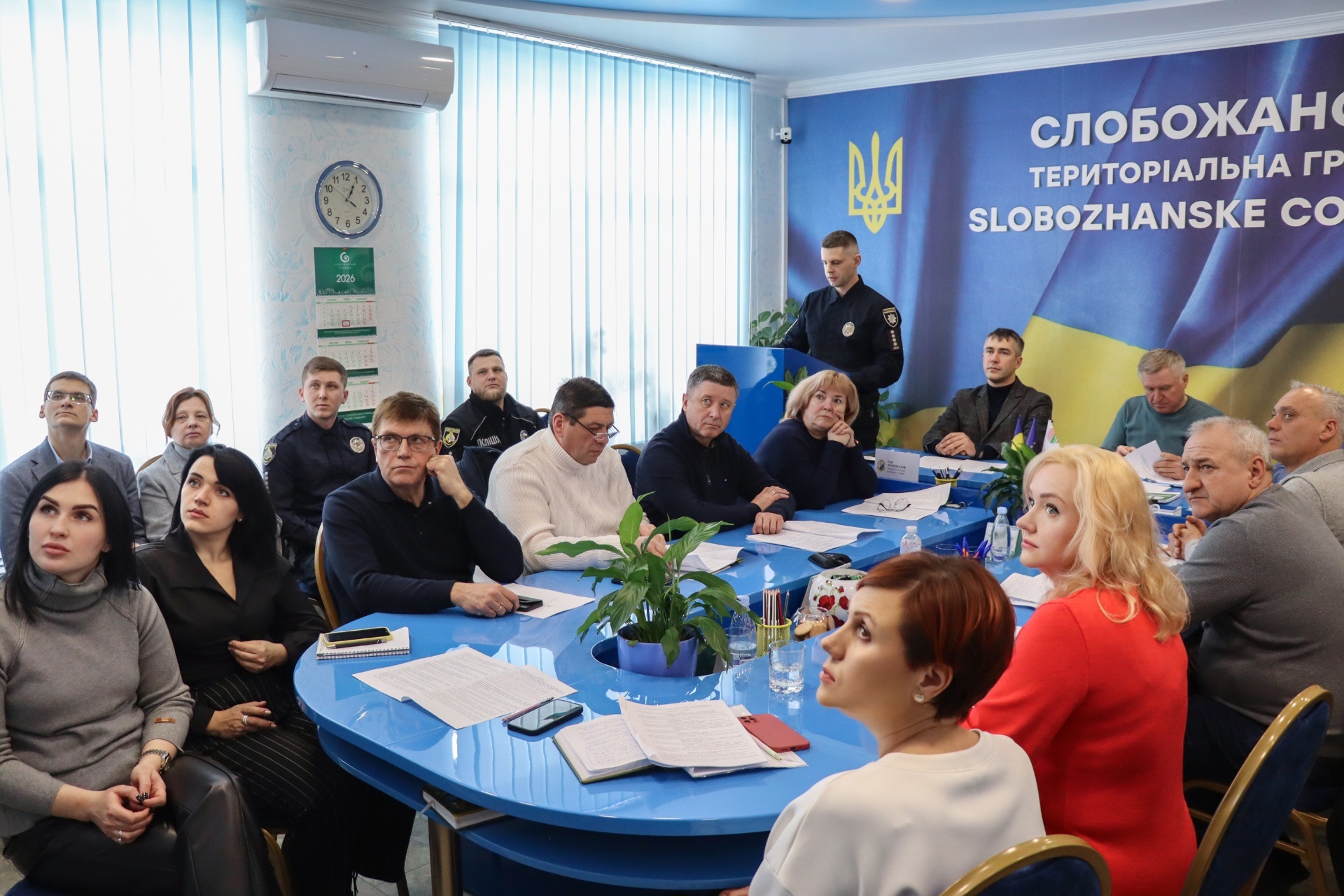 Перед початком поліцейські офіцери Слобожанської громади презентувализвіт про свою діяльність за 2025 рік. Також було підбито підсумки роботи Слобожанської селищної ради за минулий рік: затверджено річні звіти селищного голови та старостинських округів громади.