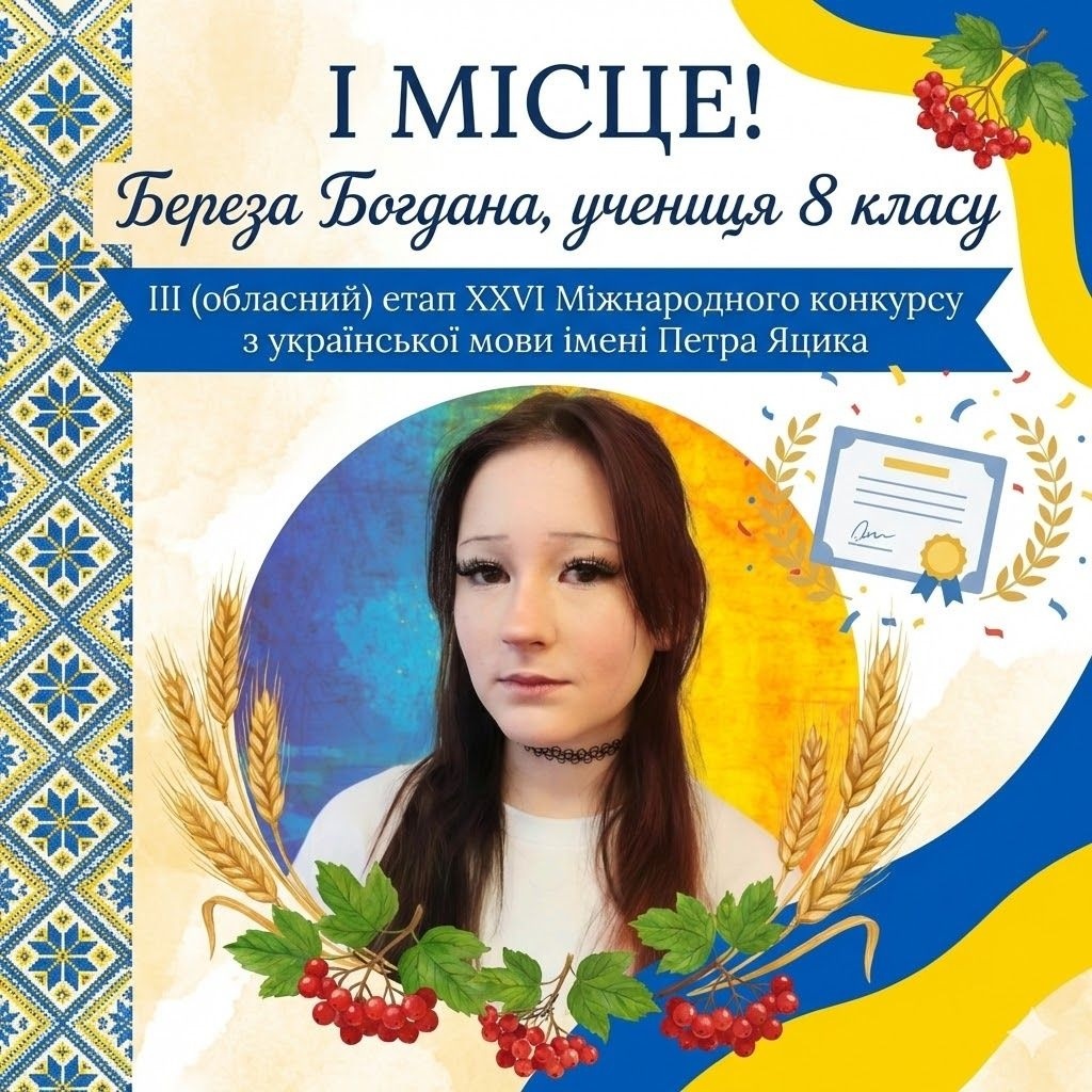 Цей тріумф став результатом багаторічної наполегливої праці, адже Богдана вже шість років поспіль впевнено підтверджує статус лідерки на найпрестижніших мовно-літературних змаганнях регіону. Її творчі роботи завжди вирізняються особливою художньою глибиною, оригінальністю думок та надзвичайним відчуттям сили рідного слова, виплеканого мудрістю нашого народу. Для талановитої ліцеїстки українська мова є не просто навчальним предметом, а простором духовної сили та потужним інструментом самовираження.