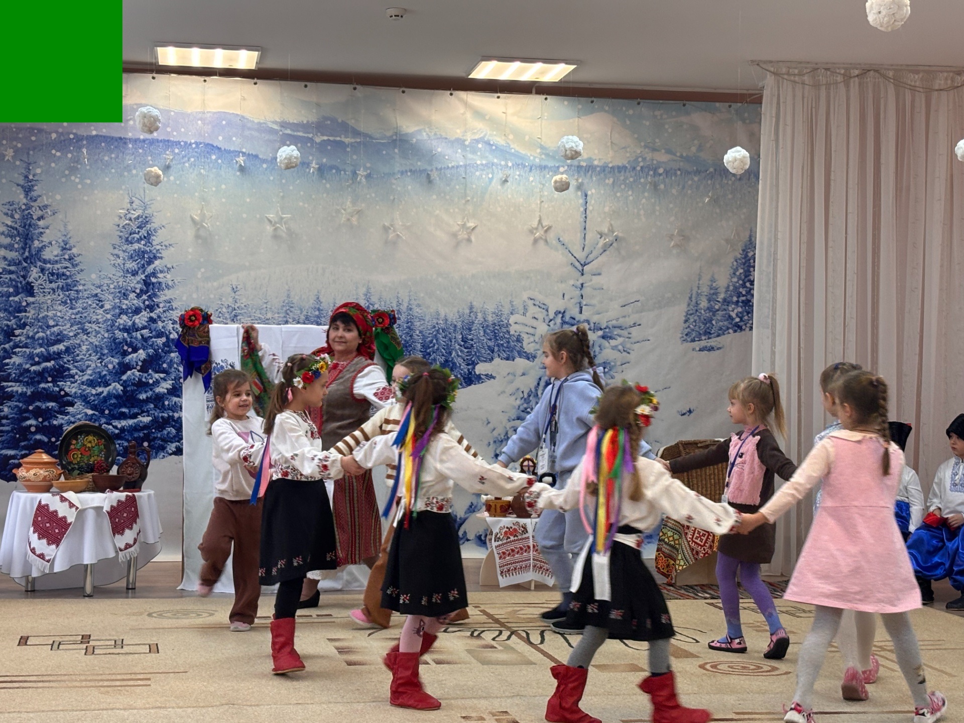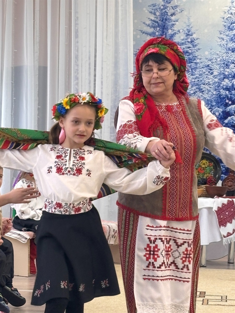У святково прикрашену залу, що нагадувала старовинну світлицю, дітлахів запросила музичний керівник Ірина РЯЗАНЦЕВА, яка у ролі Господині відкрила двері до дивовижних вечорниць «Скарби чарівної скрині». Разом із малечею вона дістала з горища стару бабусину скриню — справжній портал у далеку давнину. Скриня не піддавалася одразу, тримаючи свої таємниці під замком, аж поки діти разом не промовили чарівні слова.
