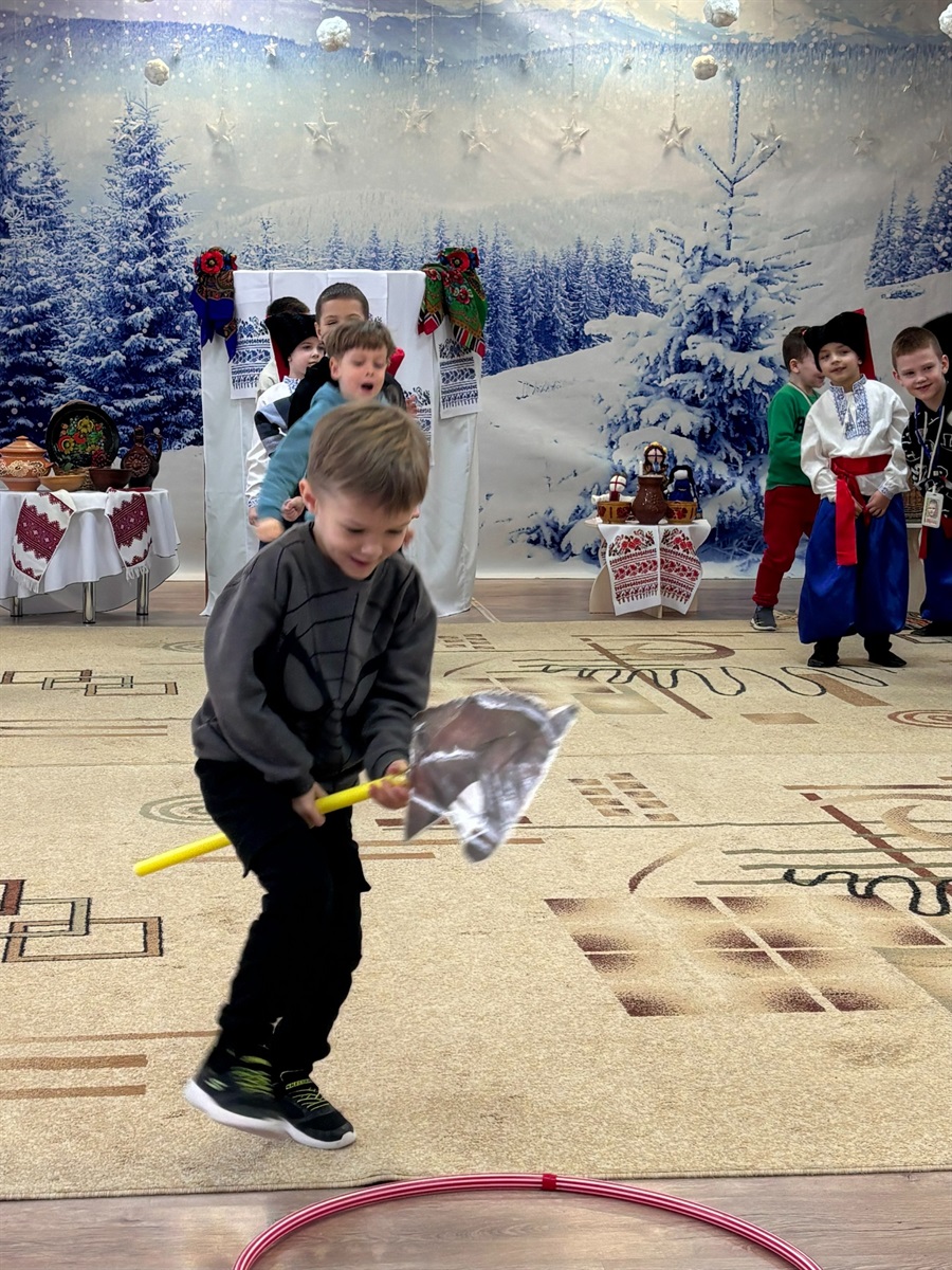 Не забарилися й розваги для майбутніх козаків — хлопці знайшли дерев’яного коника-стрибунця, майстерно виготовленого за зразком старовинних іграшок. Згадавши про вправність і мужність наших предків, вони влаштували справжні «Козацькі перегони», спритно долаючи перешкоди. Глибокого змісту події додала шкатулка із зображенням калини та вишитий рушник. Вихованці дізналися про велике значення цих символів для нашого народу, натхненно заспівали «Ой є в лісі калина» та з азартом грали в улюблену гру багатьох поколінь — «Золоті ворота».