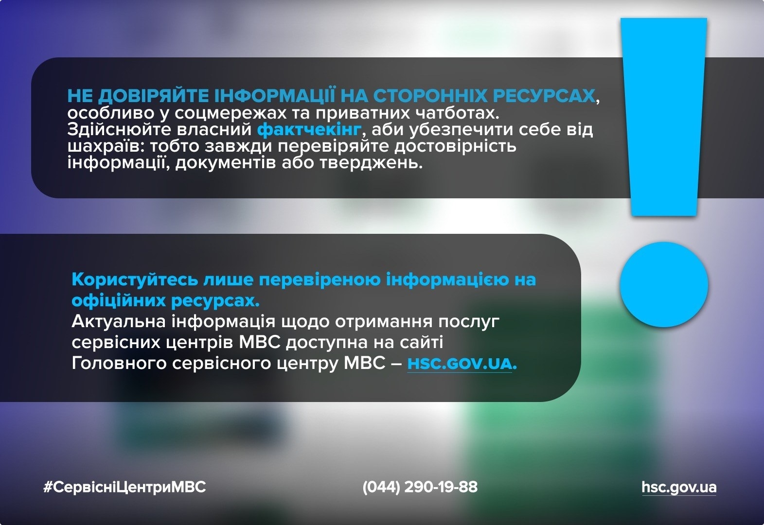 Головний сервісний центр МВС та Кіберполіція наголошують: довіряйте тільки офіційним ресурсам та перевіряйте інформацію