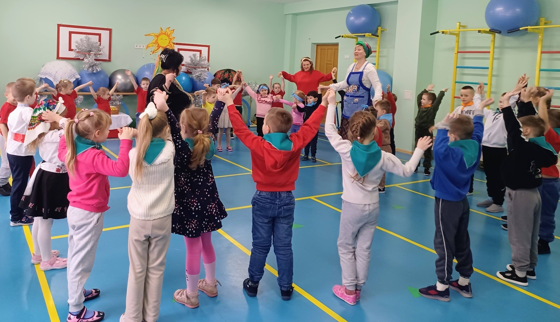 Свято розпочалося з візиту казкової Пані Масниці, роль якої виконала інструктор з фізкультури Анжеліка Аршавська. Вона завітала до малят із повними кошиками масничних гостинців, проте для частування дітям потрібно було підготувати великі столи. Вихованці молодших груп весело та злагоджено змагалися командами, будуючи святкові столи з «дерев’яних колод» – прямокутних ігрових модулів. Важливою частиною дійства став символ відходу зими – Коструба. Навколо неї хлопці та дівчата танцювали і співали, закликаючи весну прийти якомога швидше. Зокрема, вихованці старшого дошкільного віку Варвара Ляшко і Олександр Макоєд з групи «Винахідники» та Олександр Ярина і Ніна Барикіна з групи «Фантазери» разом із Пані Масницею закружляли у веселому танку «Весняне коло» у постановці музичного керівника Ірини Рязанцевої. Своїм запалом діти ніби вмовили сонечко сяяти яскравіше та розтопити кригу.