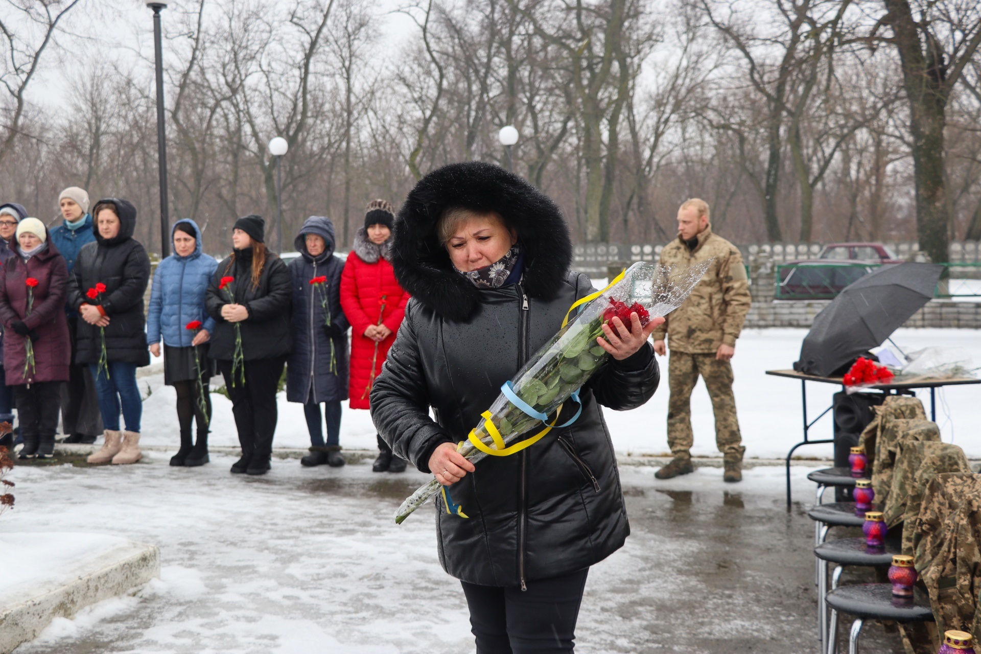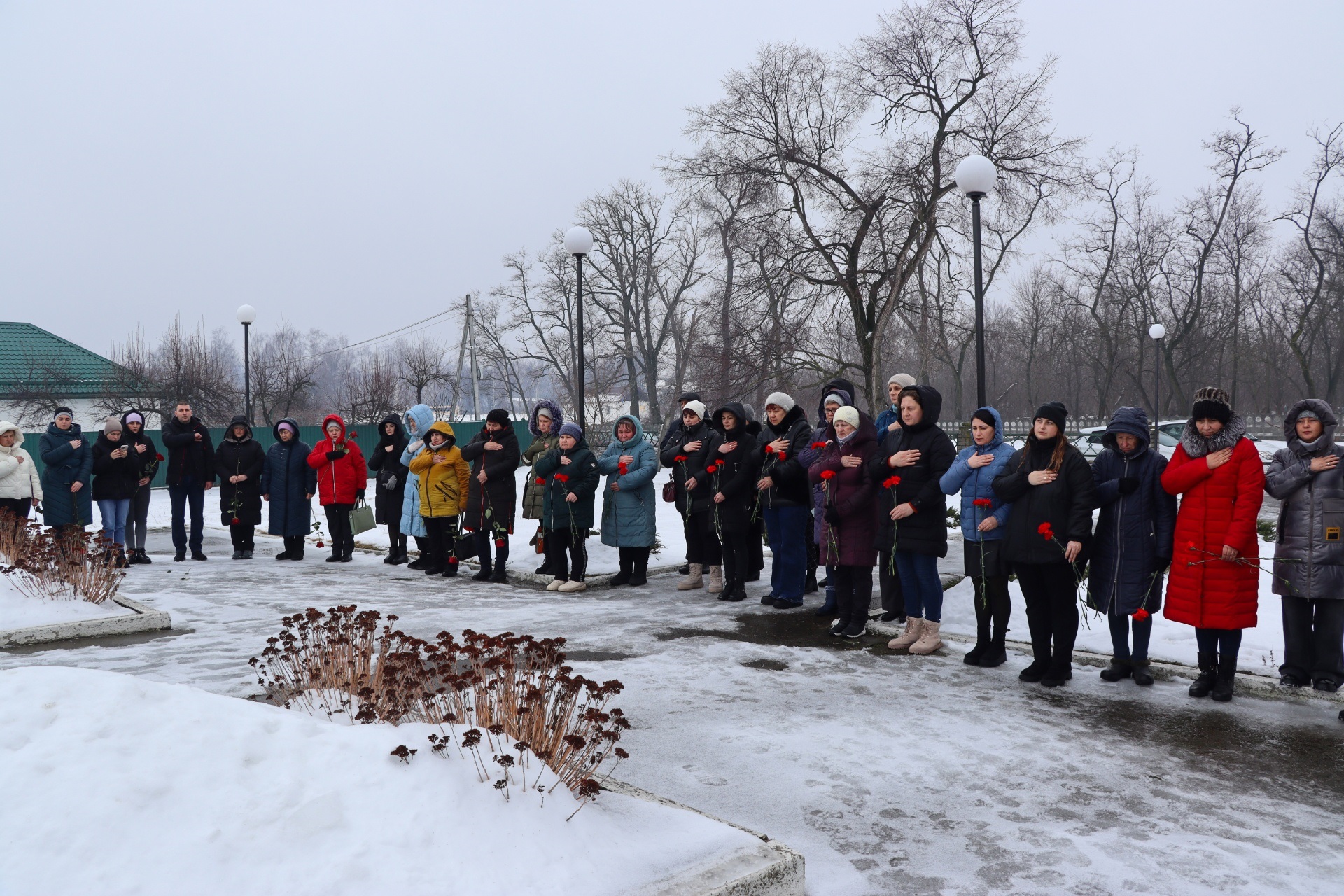 Емоційним символом заходу став флешмоб «Світло для захисників». Двадцять порожніх стільців із військовими кітелями стали німим нагадуванням про тих, хто вже ніколи не повернеться додому. Крізь щемливі звуки мелодії «Журавлі» діти принесли символічні вогники, а в тиші лунали імена загиблих земляків – кожне з них озивалося окремою історією та спільним болем громади. Присутні вшанували пам’ять героїв хвилиною мовчання та поклали квіти до Алеї пам’яті.