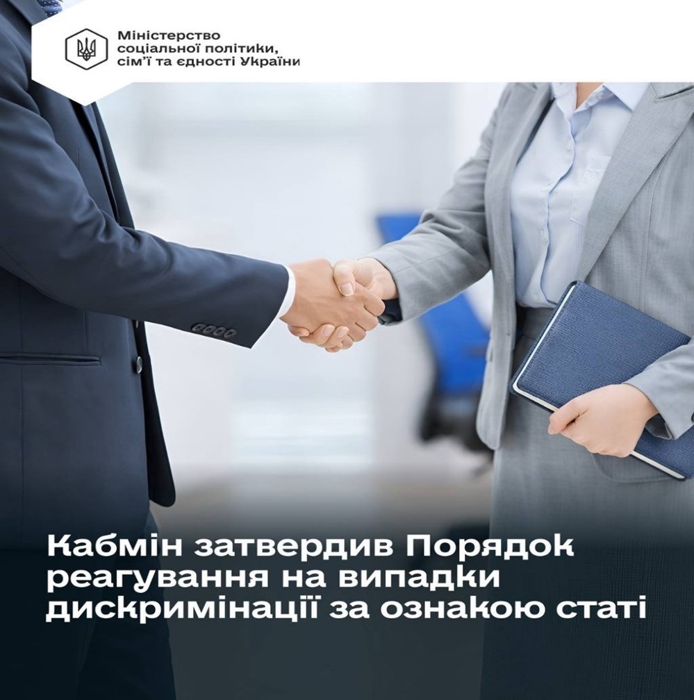 Управління соціального захисту населення Слобожанської селищної ради інформує, що 18 лютого 2026 року Кабінет Міністрів України ухвалив постанову №226 «Про затвердження Порядку реагування на випадки дискримінації за ознакою статі», яка набрала чинності 20 лютого. Реалізація цього документа допоможе запобігти дискримінації та насильству за ознакою статі, оперативно реагувати на такі випадки та забезпечити належний захист постраждалих.