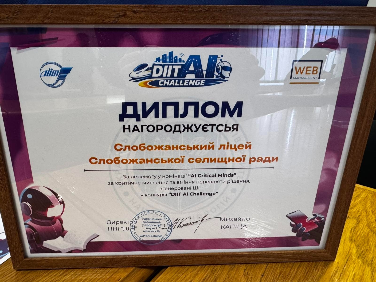 Днями талановита молодь нашої громади продемонструвала високий рівень підготовки у сфері сучасних технологій. Команда «Ерудит» Слобожанського ліцею взяла участь в інноваційному освітньому челенджі «DIIT AI CHALLENGE», що відбувся на базі Дніпровського інституту інфраструктури і транспорту (УДУНТ).
