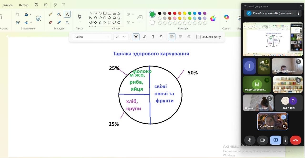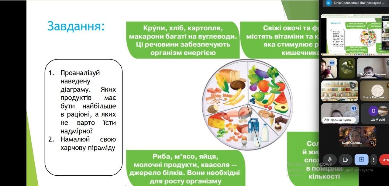 Особливу зацікавленість викликали практичні вправи з моделювання «здорової тарілки», під час яких школярі складали приклади збалансованого раціону та аналізували щоденне меню.