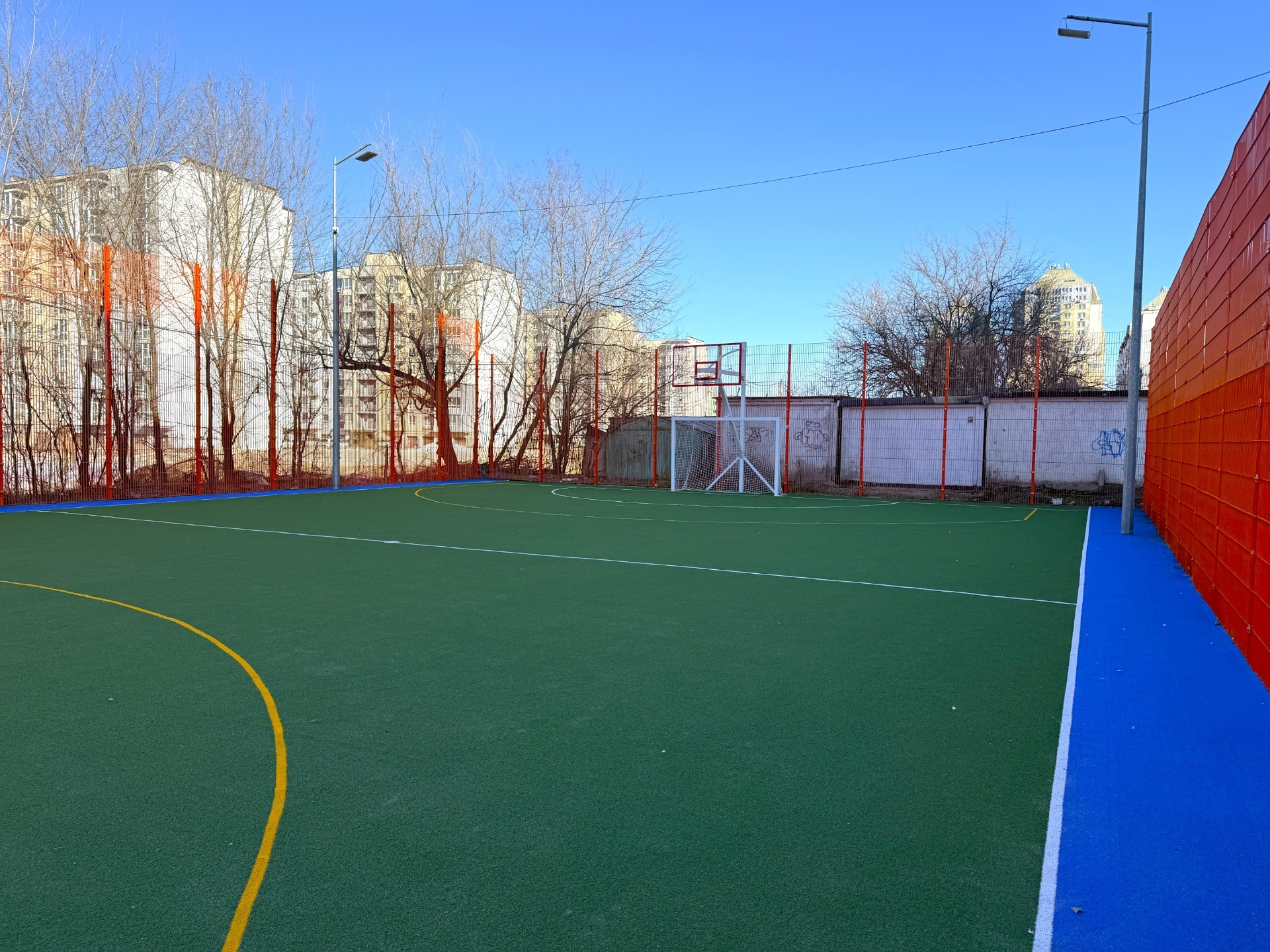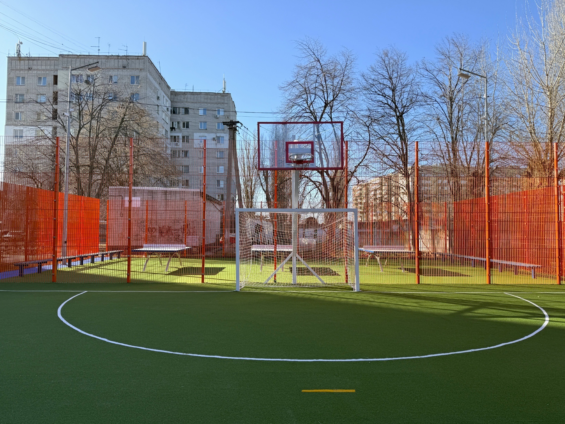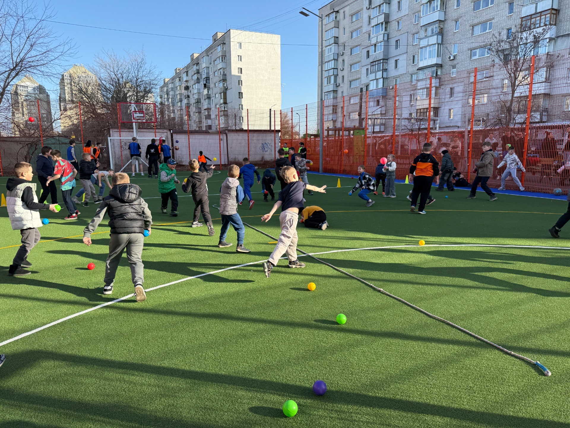 оновлено покриття площею понад 700 м² штучної трави та нанесено розмітку для мініфутболу і баскетболу;