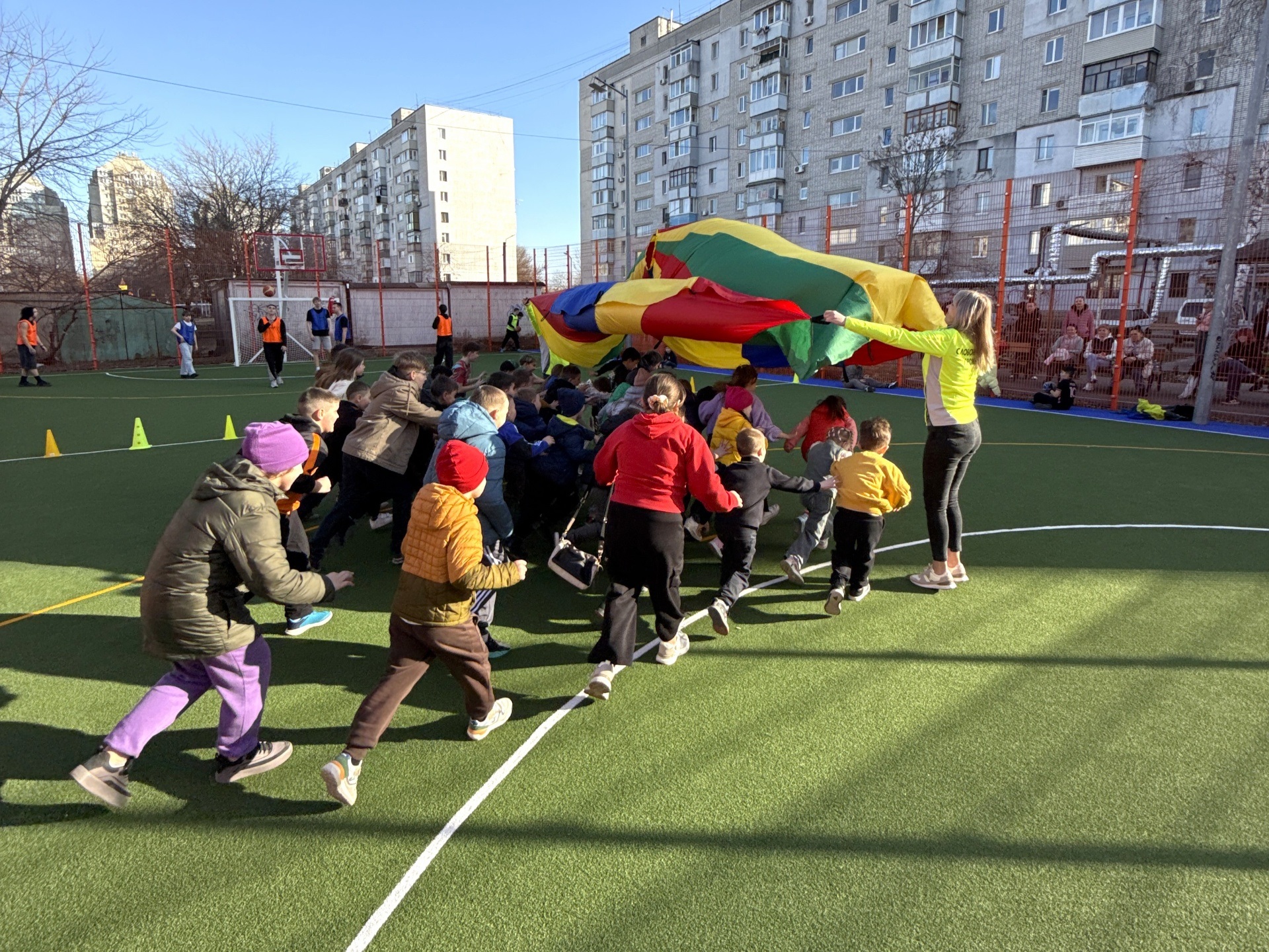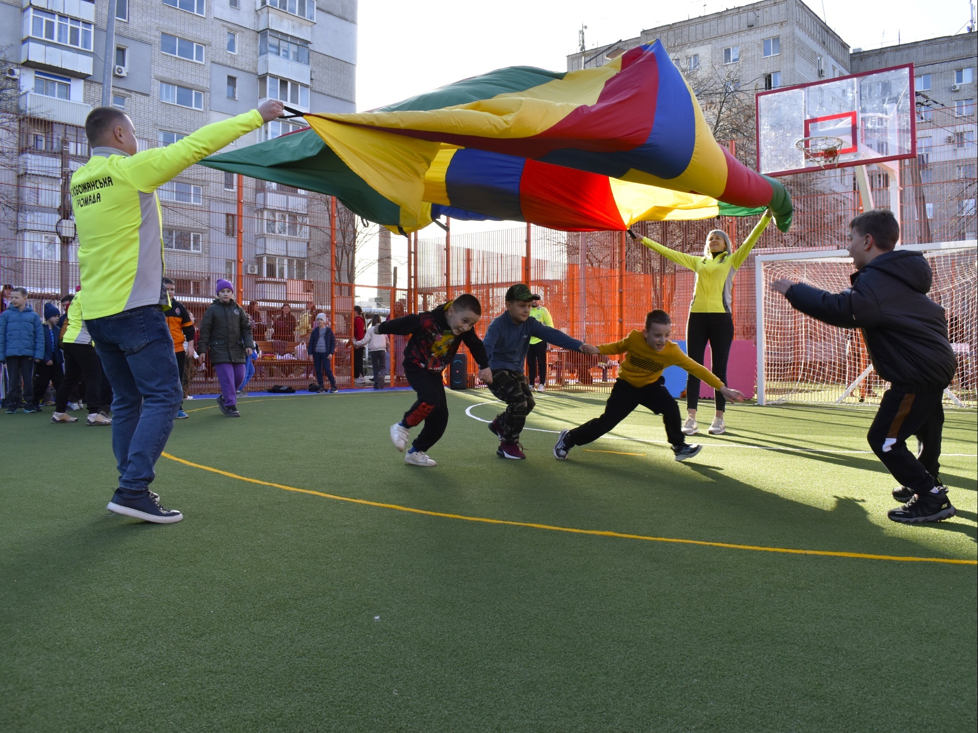 Для наймолодших гостей організували активні «Рухливі години» з веселими іграми та естафетами. Атмосферу спортивного азарту доповнила гра у стрітбол, у якій взяли участь дворові команди громади.