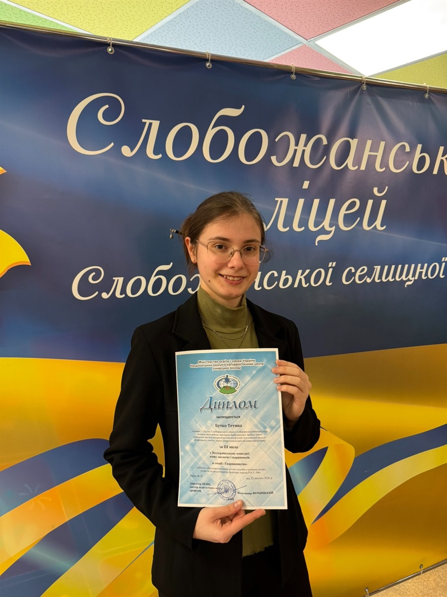 Тетяна Бутко, учениця 11-Д класу, представниця Слобожанської громади - серед переможців Всеукраїнського конкурсу юних зоологів і тваринників!