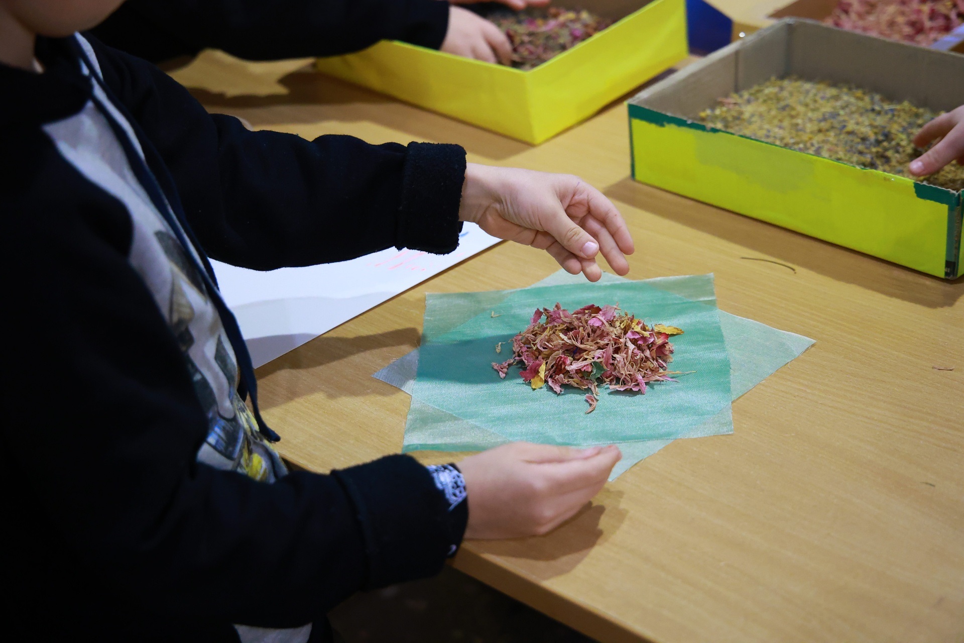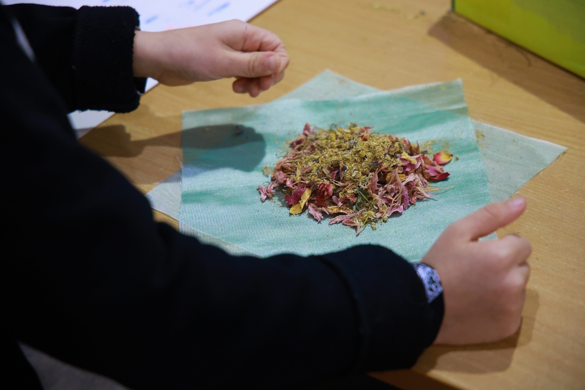 Практичний етап: створення індивідуальних ароматичних мішечків. Діти власноруч наповнювали їх сумішшю духмяних лікувальних трав, вивчаючи особливості природних ароматів.