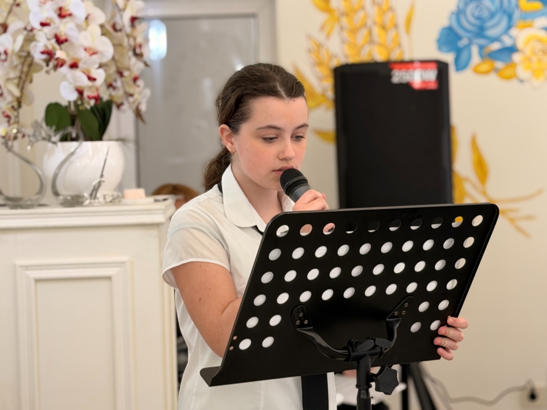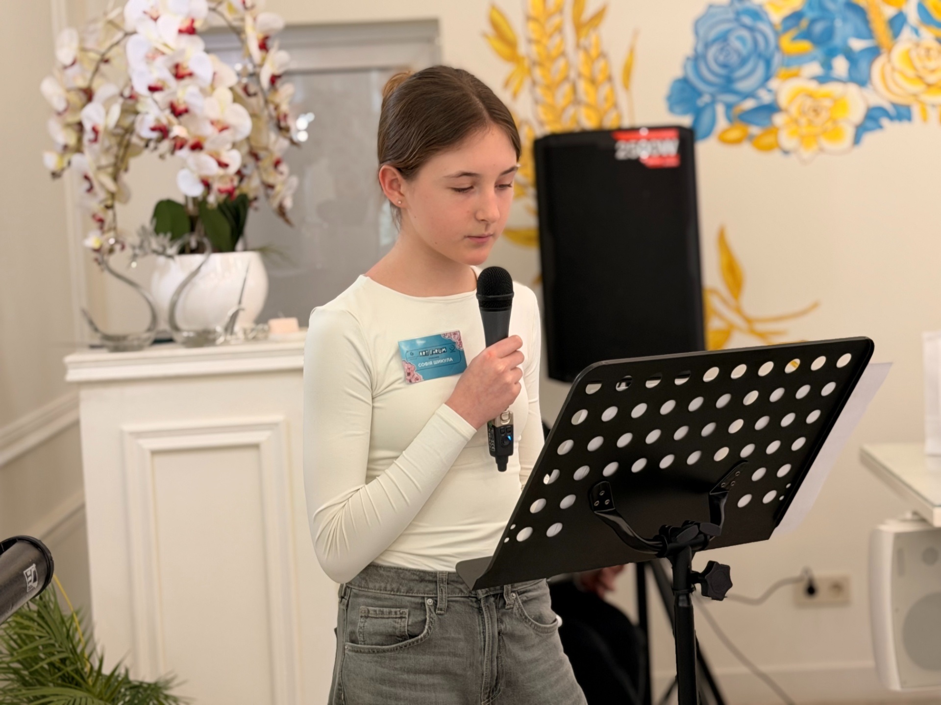 Презентацію виставки провела учениця школи Дарина Кукленко, а особливу атмосферу створила вокальна композиція у виконанні Поліни Литвин (клас викладачки Марії Хоменко).