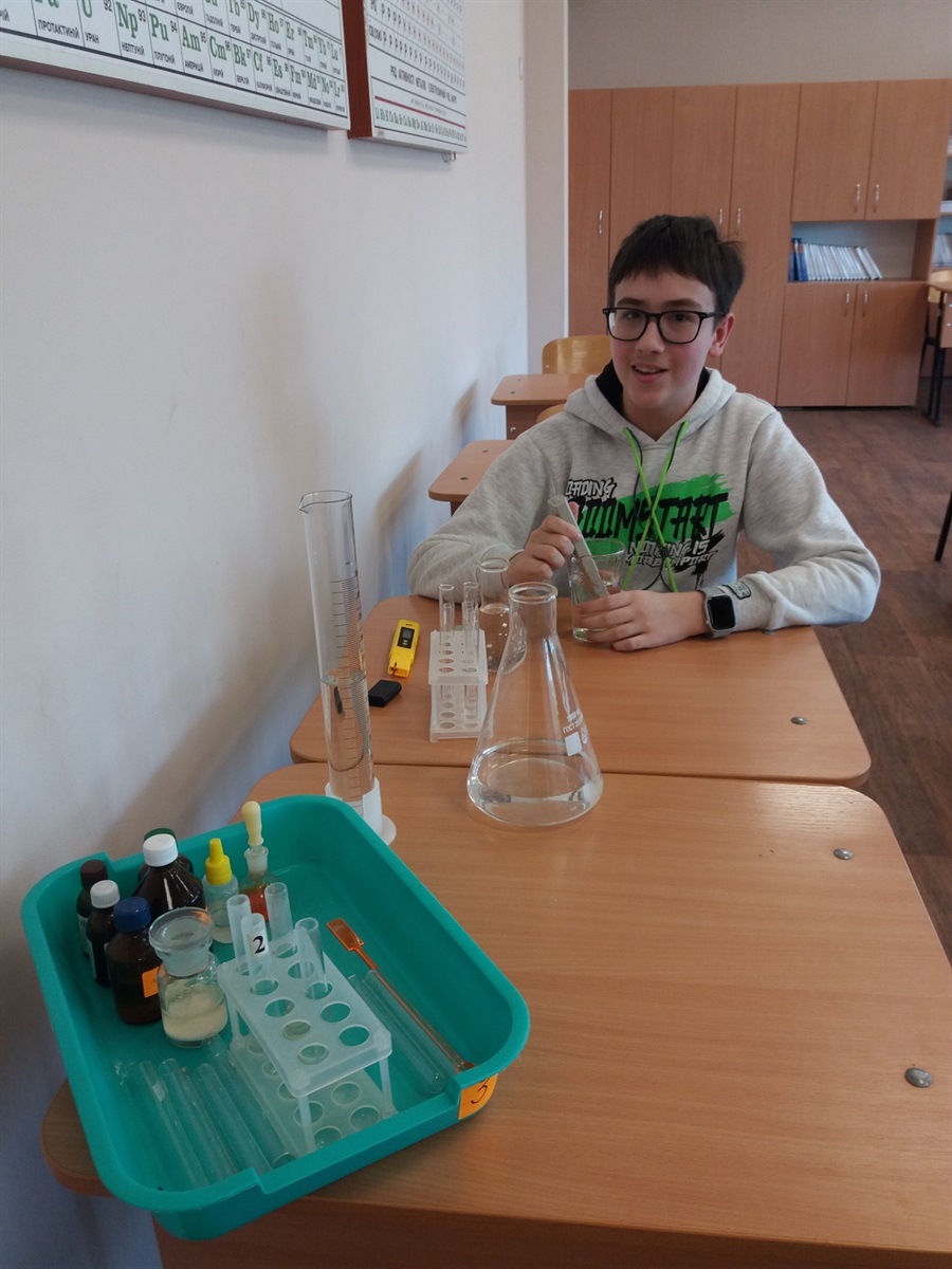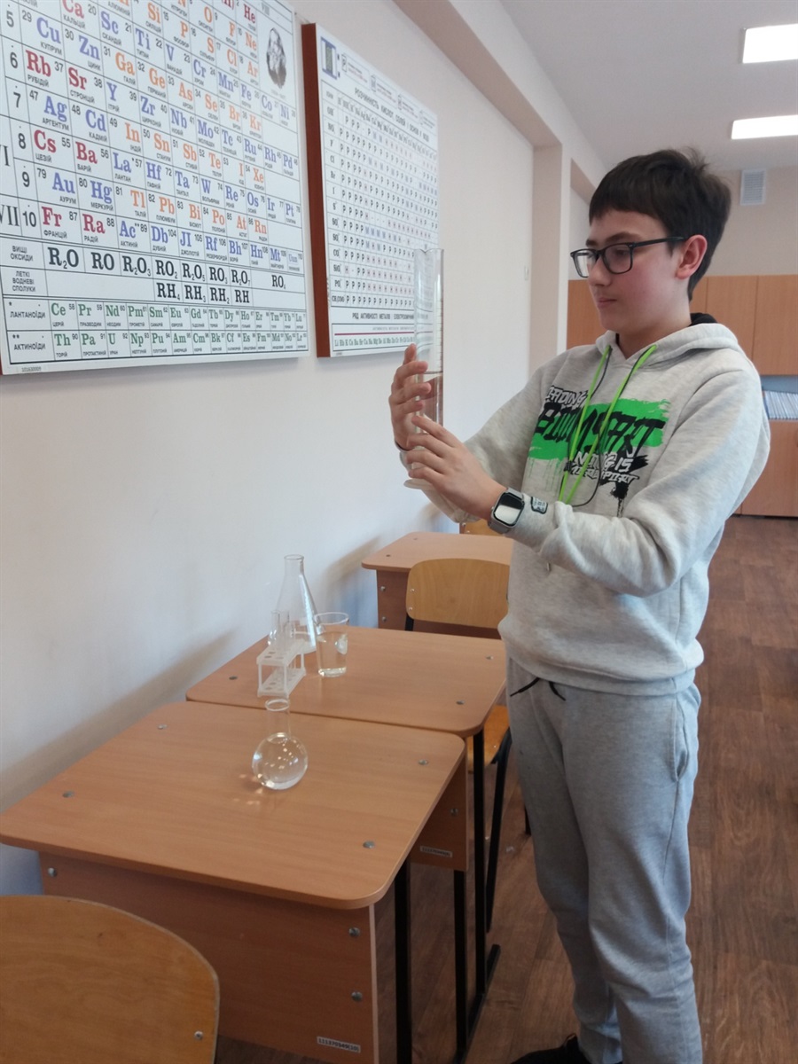 Юний дослідник представив свої напрацювання в науковому проєкті за темою: «Порівняльний аналіз показників якості питної води з різних джерел водопостачання в Дніпропетровській області».