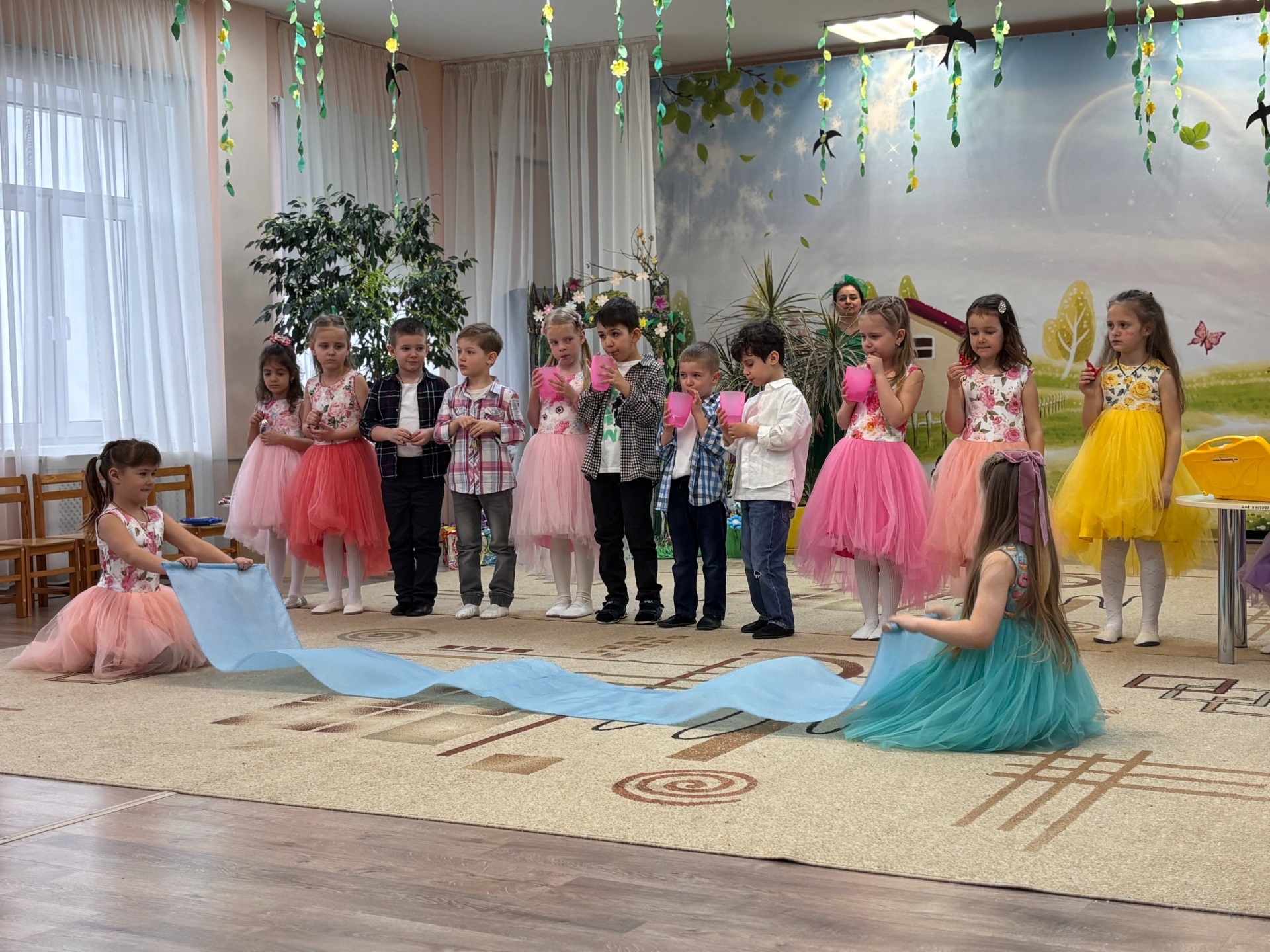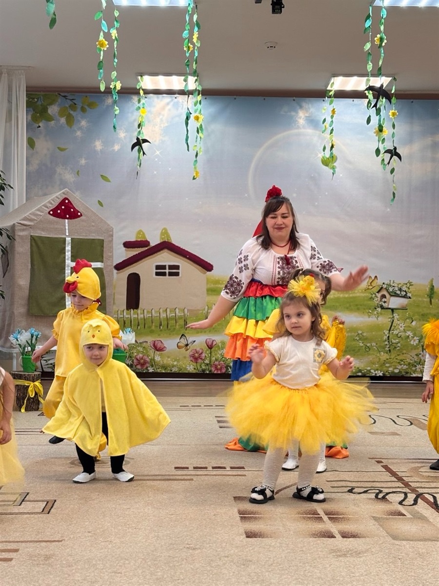 Не менш зворушливою стала історія про казкове селище, де найменші артисти з групи молодшого дошкільного віку «Хвилинки» перевтілилися у пухнастих кошенят та золотавих курчат. Їхня безпосередність розчулила навіть суворого Вовка, який під виглядом «Няні Іванівни» намагався влитися у святкову метушню. Разом вони вчилися прати хустинки, грати на ложках та дружньо зустрічати сонечко, перетворюючи музичну залу на острівець затишку та безтурботного дитинства. На завершення кожна дитина змогла «заховати» своє найзаповітніше бажання в долоньки, щоб із теплим подихом випустити його у світ, немов пташку.
