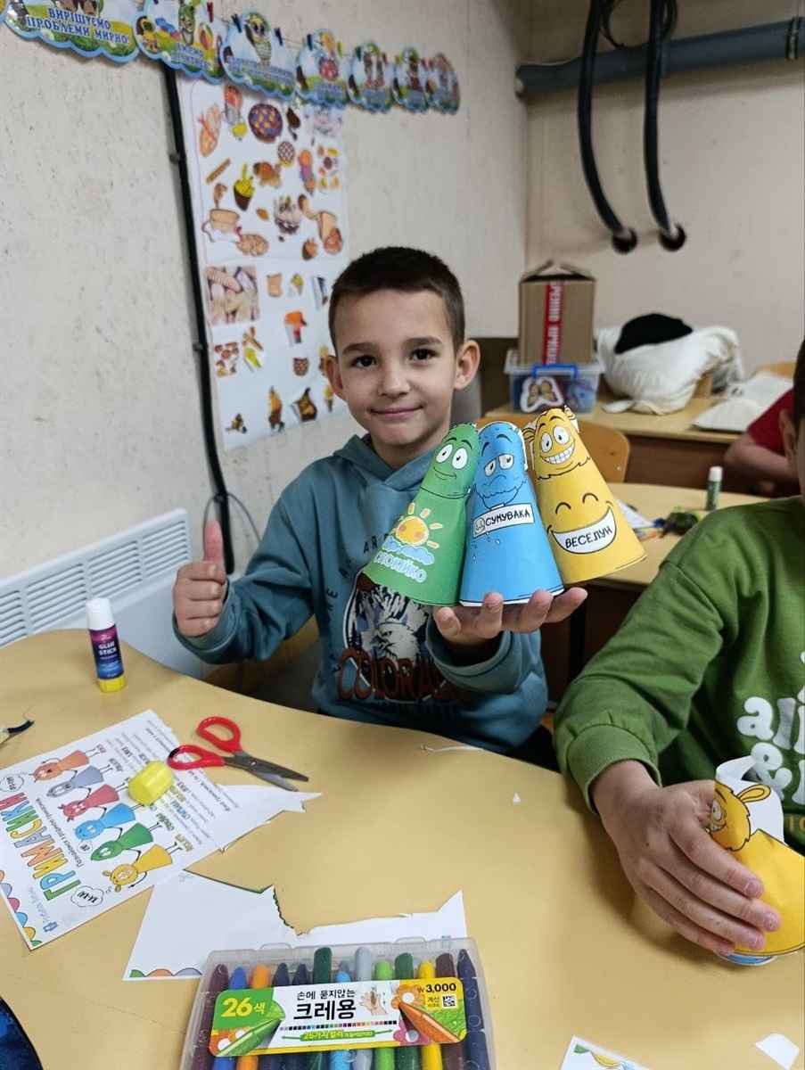 Наприкінці зустрічі кожен учень отримав власний «конус» та завдання для спільної гри з батьками. Де було запропоновано продовжити роботу вдома через щирі розмови, використовуючи фрази-підказки: «Я сумую, коли…», «Я злюся, коли…», «Я радію, коли…».