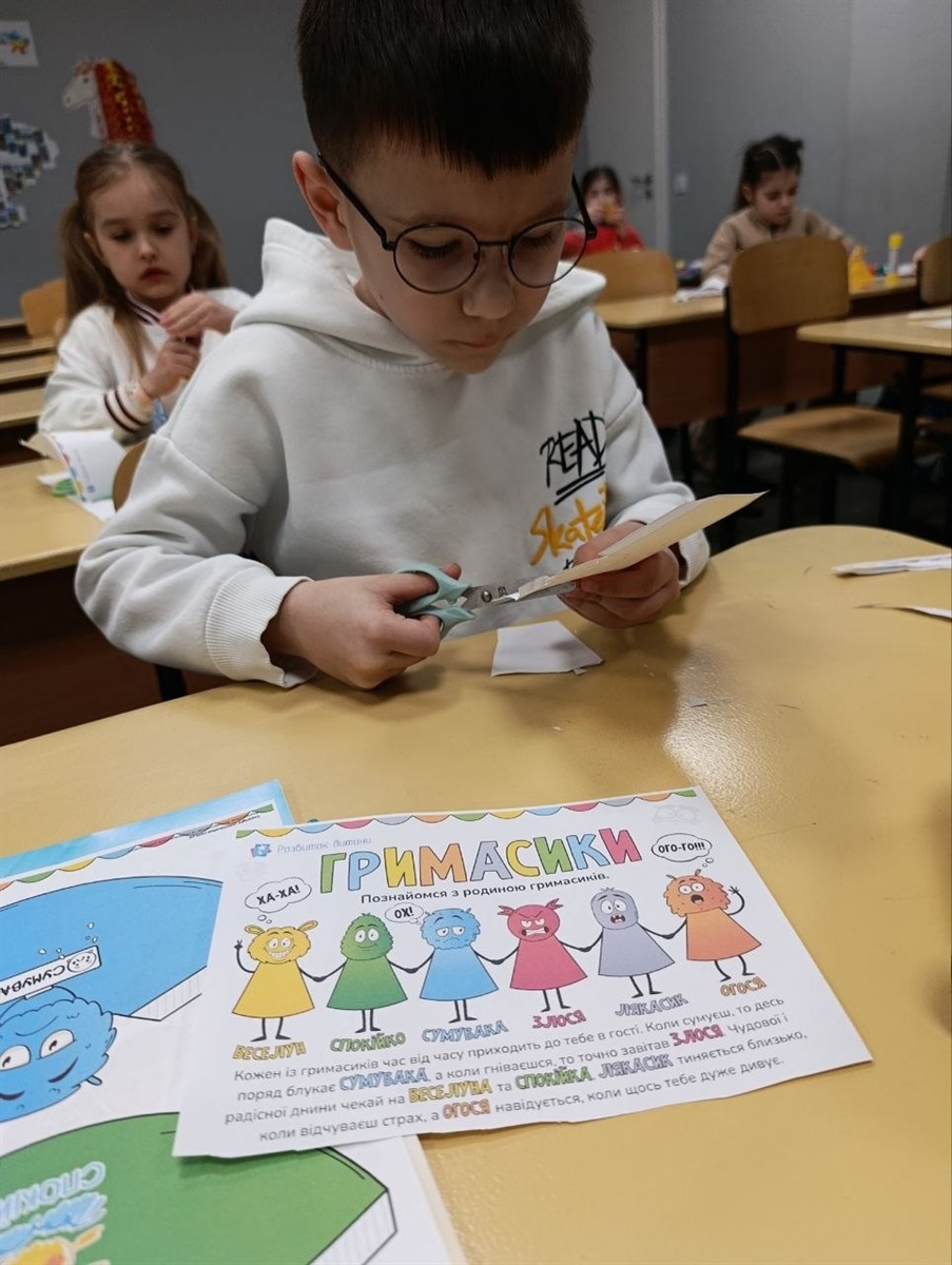 Творчі вправи: діти розфарбовували «гримасиків», що відповідають різним емоційним станам. Це допомогло візуалізувати внутрішні відчуття.
