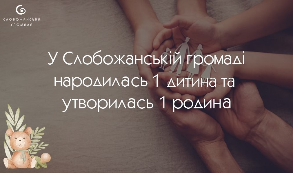 Минулого тижня, з 30 березня по 5 квітня 2026 року, в межах населених пунктів Слобожанської територіальної громади народився 1 хлопчик. В цей же період утворилась 1 нова родина. Інформація надана від Центру надання адміністративних послуг Слобожанської селищної ради та Слобожанської центральної лікарні.