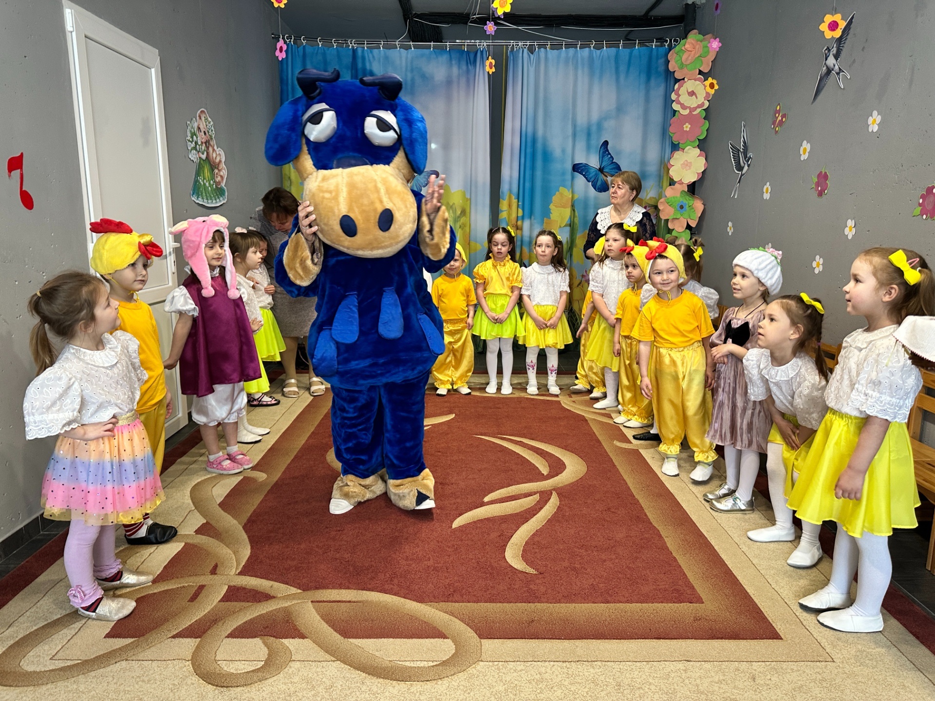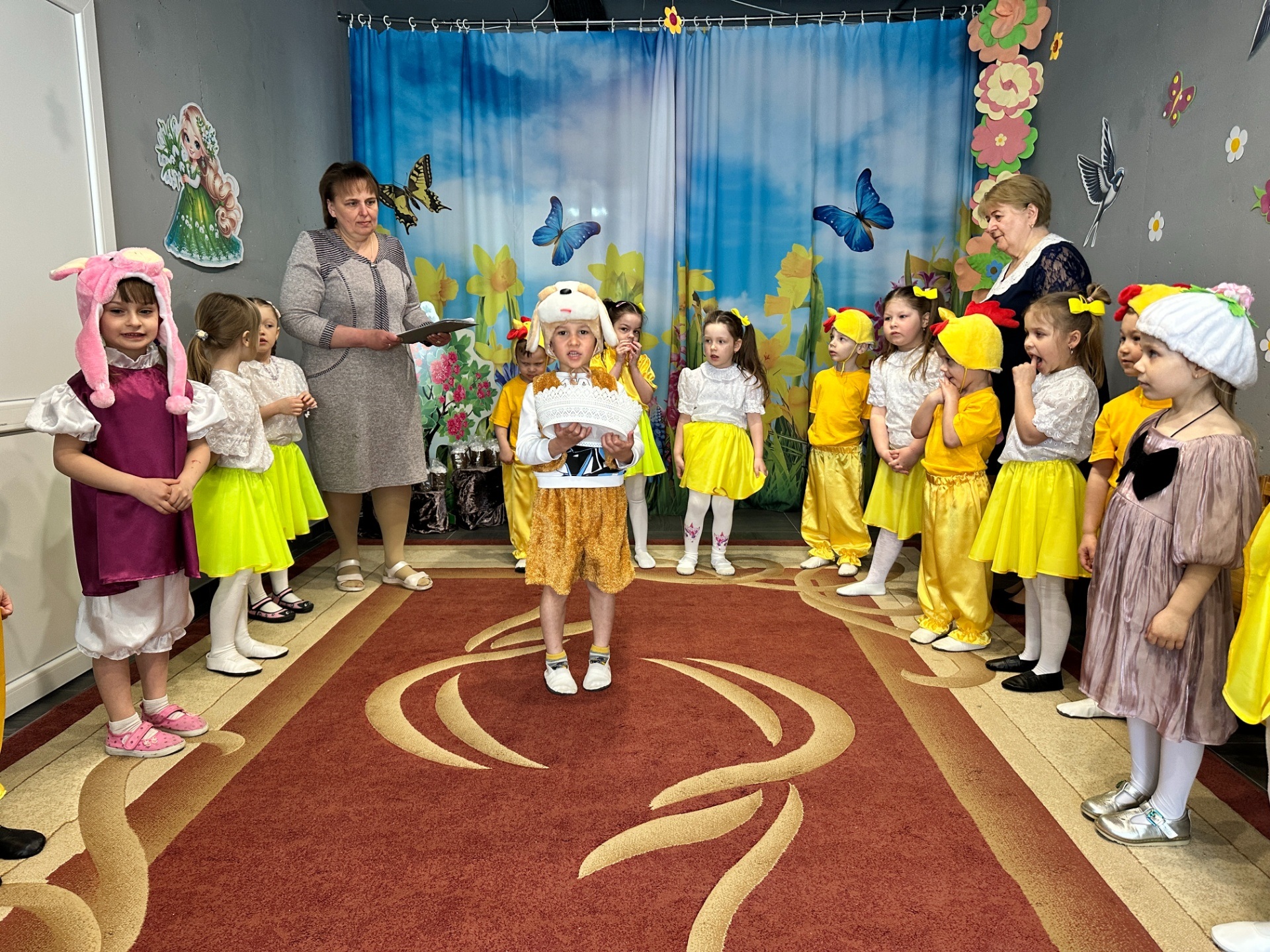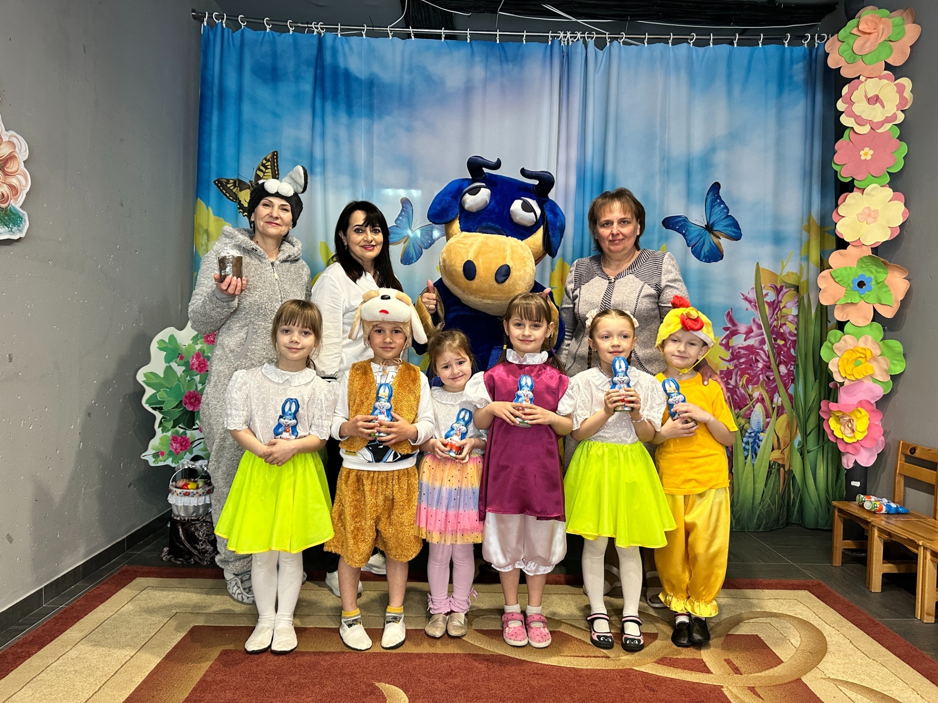 До вихованців груп «Казка» та «Сонечко» завітав веселий Зайчик. Разом із дітьми він почав збирати великодній кошик. На допомогу прийшли казкові гості: Свинка принесла сальце, Собачка – ковбаску, а маленькі Курчатка подарували яєчка. Справжнім сюрпризом стала поява Пасочки, яка привітала всіх зі святом та побажала добра і радості.