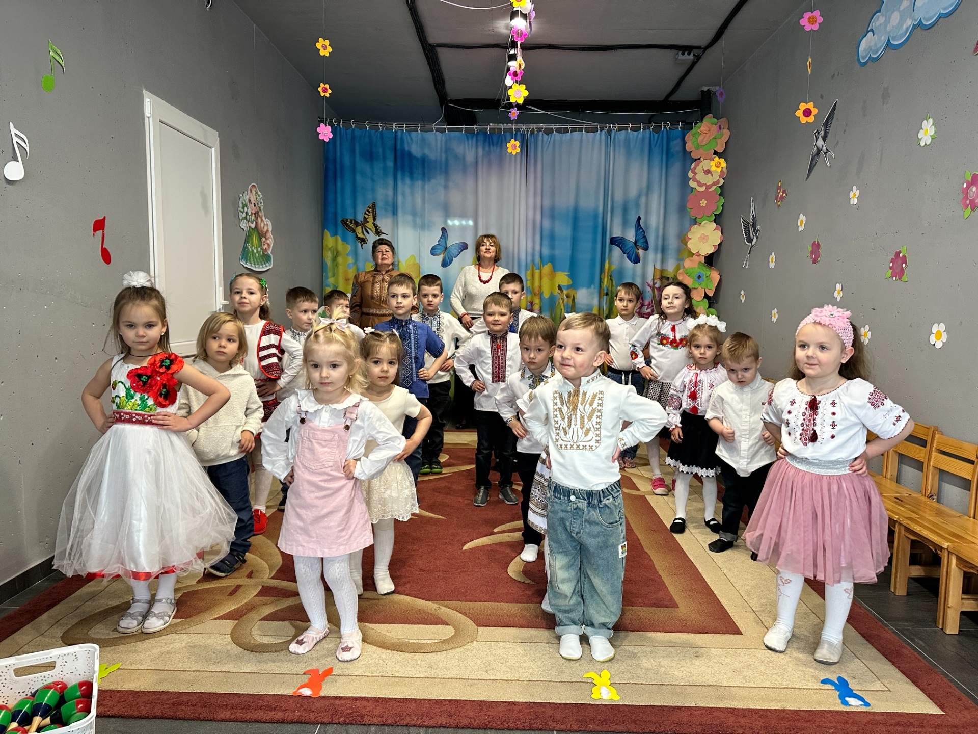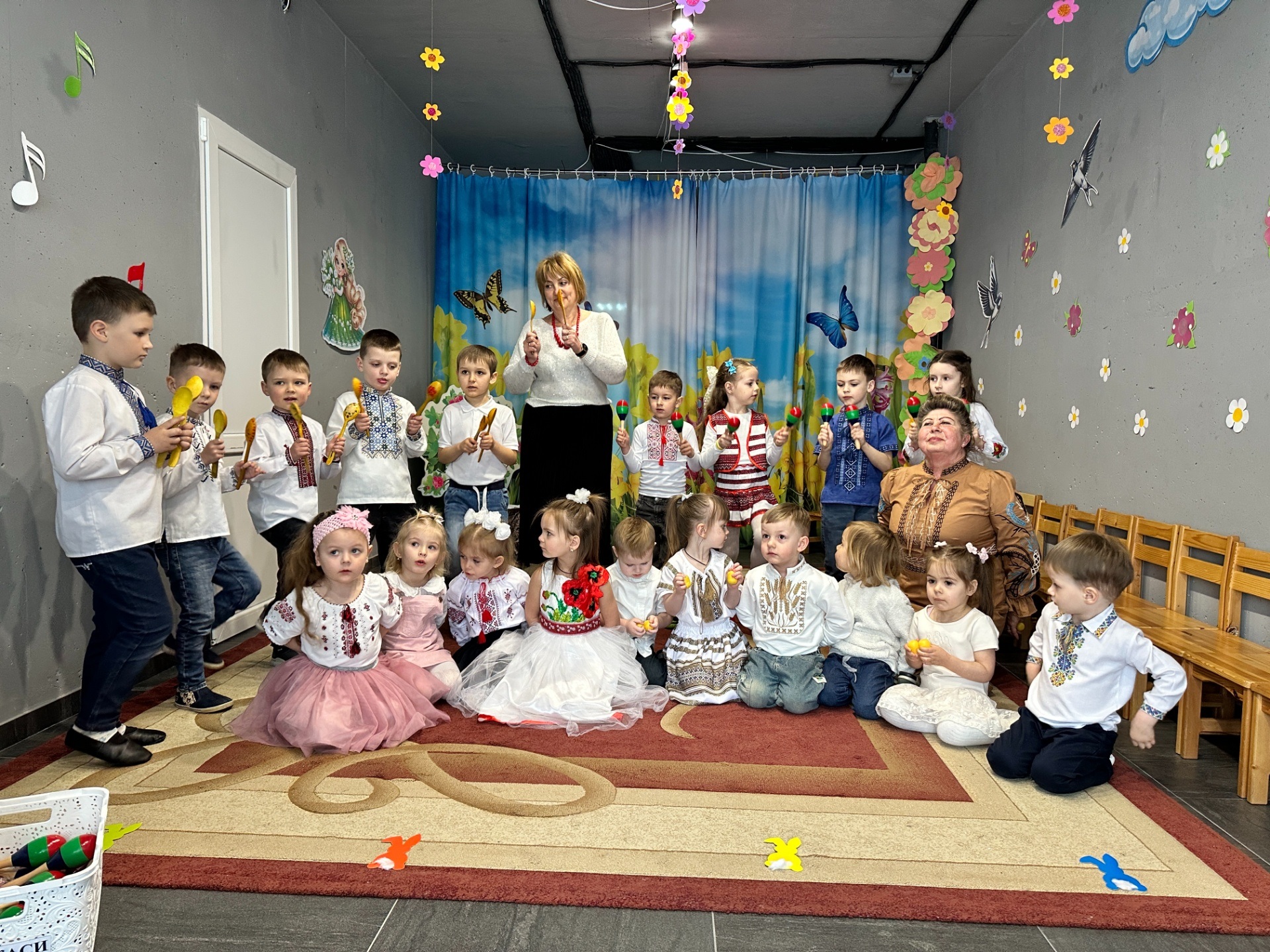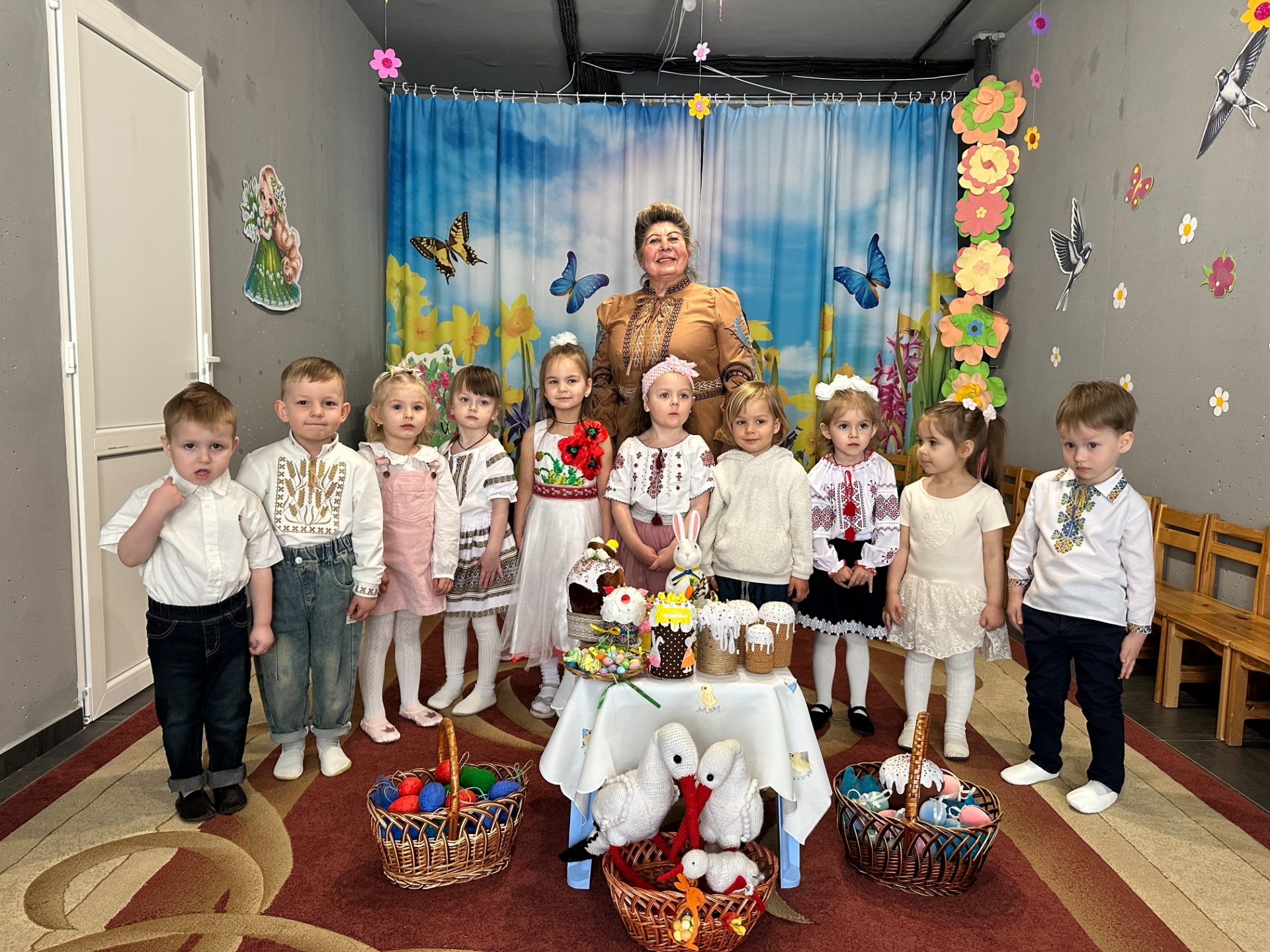 Діти з груп «Веселка» та «Зірочка» також активно долучилися до святкування. Вони брали участь у веселих іграх «Знайди пару крашанці» та «Розмалюємо писанку», виконували пісні-руханки «Спечемо пасочку» і «Святий Великдень». Особливий настрій створив весняний оркестр, у якому малята із задоволенням грали на музичних інструментах.