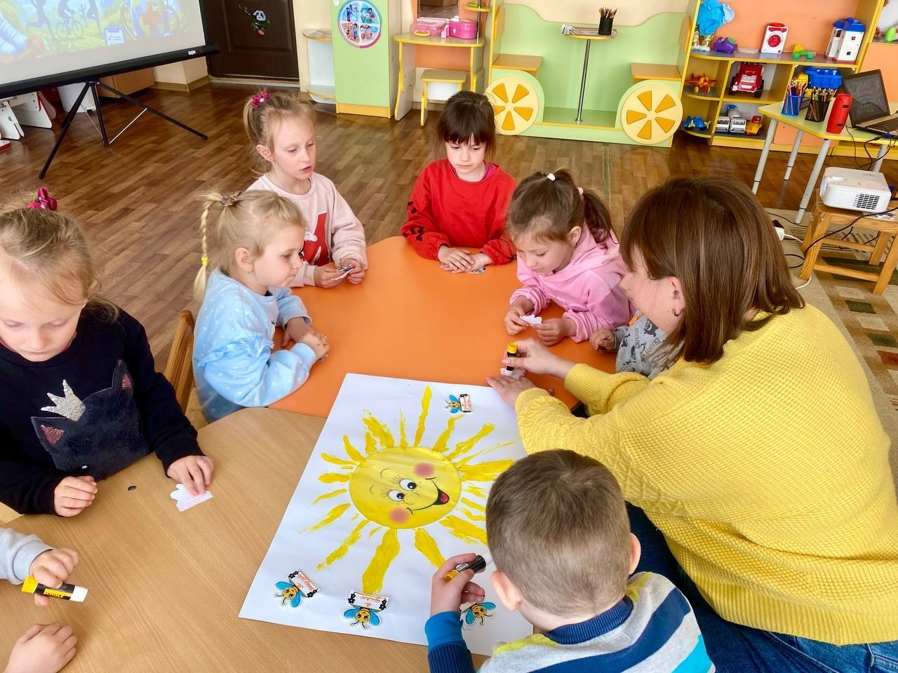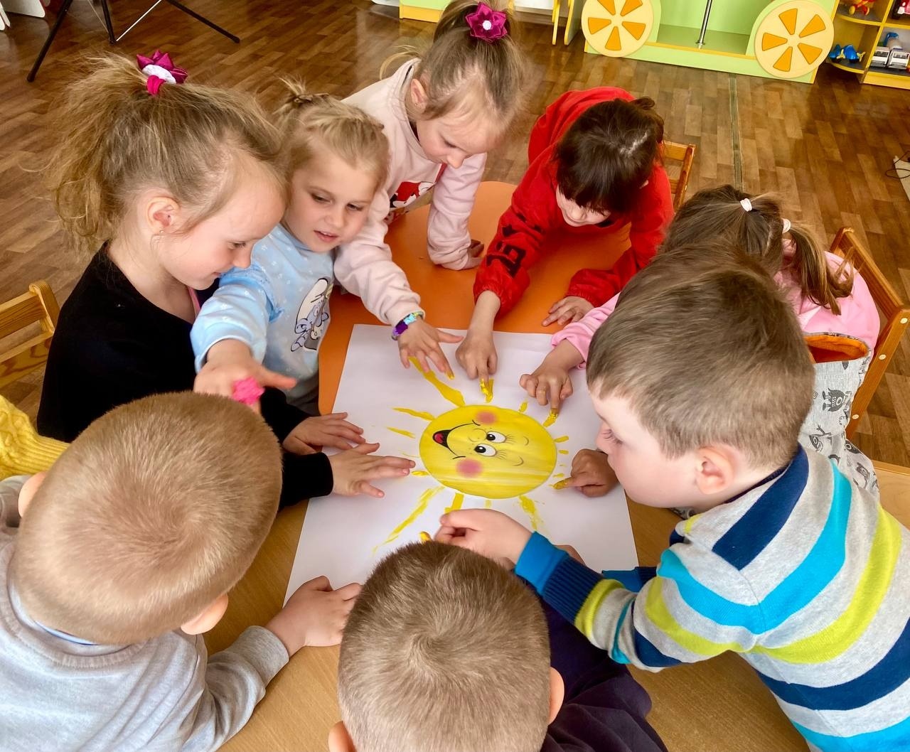 Не менш захопливим стало практичне завдання: дітям запропонували розмалювати лише корисні для споживання продукти. Така діяльність допомогла малюкам краще зрозуміти, яка їжа є важливою для організму. Особливе захоплення викликала творча групова робота «Сонечко здоров’я». За допомогою пальчикового малювання діти створювали яскраве сонечко та наклеювали зображення з ознаками здорового способу життя. У результаті вийшла спільна символічна композиція, що уособлює здоров’я, радість і гармонію.